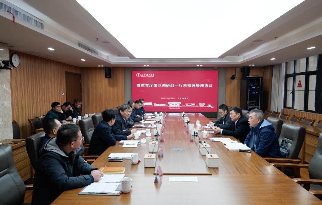 本网讯 1月2日上午,省教育厅第三调研组组长、省教育厅二级巡视员李伟一行来百家乐 开展高校“急难愁盼”问题专题调研。校党委副书记罗仙平出席调研座谈会,相关职能部门负责人参加会议。会议由罗仙平主持。