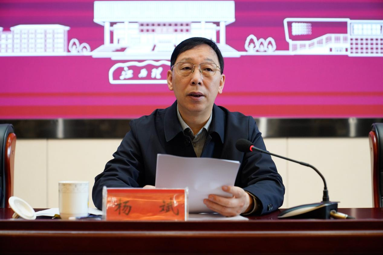 就深入学习贯彻习近平总书记考察江西重要讲话精神,结合下一阶段的重点工作,杨斌提出三点要求:一是要深刻学习领悟习近平总书记考察江西重要讲话精神的精髓要义,坚定不移沿着习近平总书记指引的方向前进;二是要坚定信心、开拓奋进,持续提升社会服务能力,奋力推动学校事业高质量跨越式发展;三是要坚持和加强党的全面领导,营造风清气正的政治生态,为学校事业发展提供坚强的政治保障。