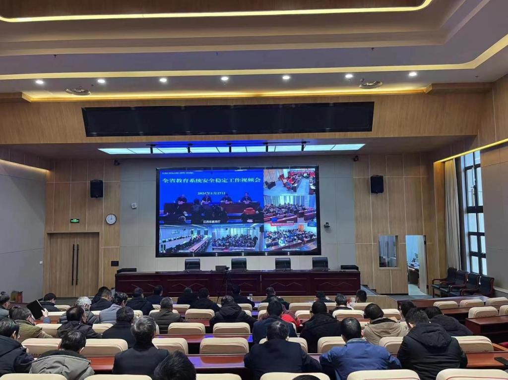 本网讯 1月27日下午,百家乐 在三江校区启航会议中心1号会议厅组织收听收看全省教育系统安全稳定工作视频会议并召开安全稳定工作部署会。校党委书记杨斌,校党委副书记罗仙平,校党委常委、副校长唐云志、熊志华,校党委常委盛晓明、刘志刚、汪锋锁以及全校各部门、各学院(校区)相关负责人参会。会议由罗仙平主持。