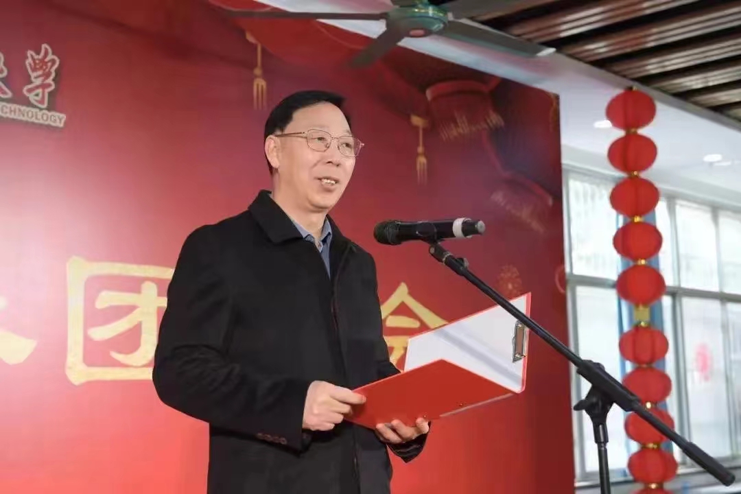 杨斌首先向留校的同学们和坚守岗位、奋战一线的教职员工,致以新春祝福和美好祝愿。随后,杨斌回顾了过去一年学校在学科建设、教学工作、科学研究、学科竞赛等方面取得的成就,并代表学校对各位师生员工的辛勤付出表示衷心感谢。杨斌希望全体师生在新的一年筑牢奋斗根基、保持蓬勃朝气,乘风破浪,朝着加快建设“综合实力全国一流、行业引领作用突显、特色领域国际领先的高水平大学”的目标奋进。最后,他祝愿伟大的祖国繁荣昌盛,祝江理蒸蒸日上、同学们学业有成。