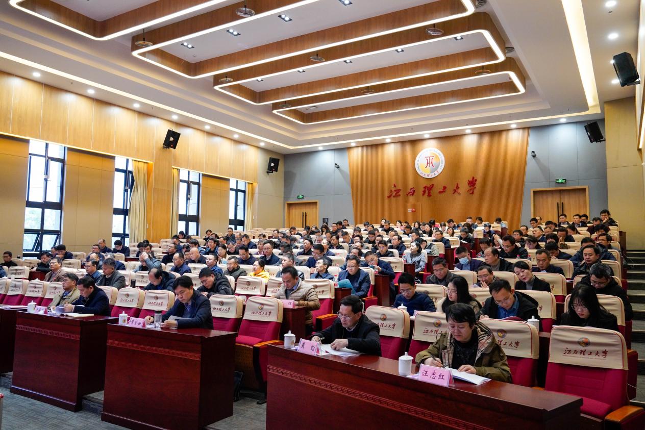 杨斌代表学校领导班子作2023年度工作总结,并汇报领导班子及其本人落实党风廉政建设责任制和履行意识形态工作责任情况。他从坚持全局观念统筹推进,专项工作成效显著;聚焦主责主业担当实干,党的建设全面加强;聚焦国家战略和江西经济社会发展需求积极作为,推动学校事业高质量发展三个方面报告了学校2023年工作情况,并就此次考核测评和民主评议提出了具体要求。