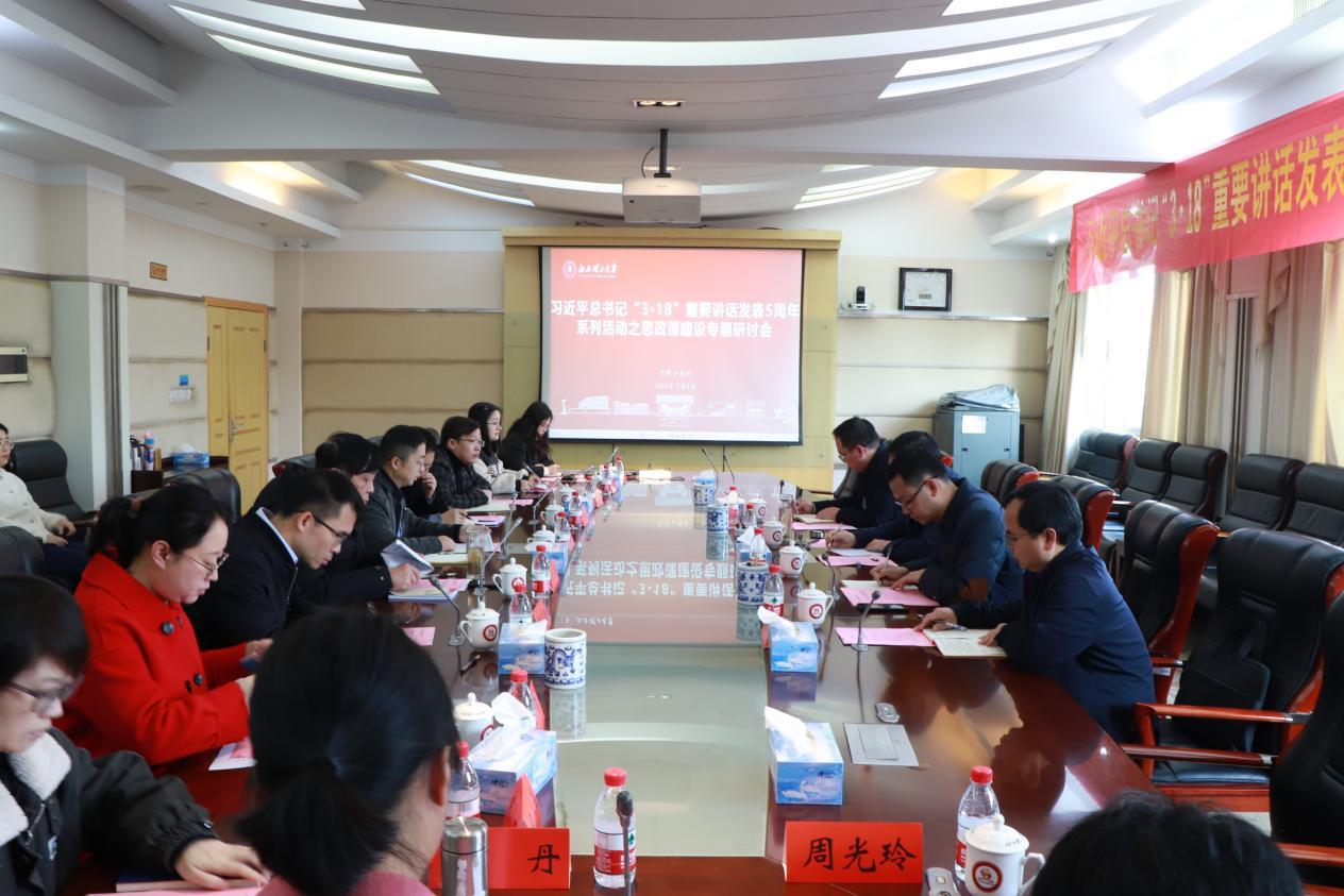 思政课建设专题研讨会在红旗校区原行政楼四楼第二会议室举行。校党委书记杨斌出席会议并讲话。党委宣传部、人事处、教务处等部门相关负责人,马克思主义学院领导班子成员、党委委员、教研室主任、支部书记及教师代表参加会议。会议由马克思主义学院院长邓显超主持。