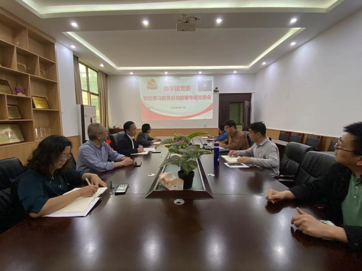 4月17日,商学院召开党纪学习教育启动部署专题党委会。会议集中学习了中共中央办公厅印发的《关于在全党开展党纪学习教育的通知》、中央党的建设工作领导小组研究部署党纪学习教育工作的会议精神以及省委常委会部署开展党纪学习教育、群众身边不正之风和腐败问题集中整治等工作的会议精神。会议强调,要以实干实绩检验党纪学习教育成效,必须注重融入日常、学用结合,把开展党纪学习教育与贯彻落实党中央重大决策部署结合起来,与做好学校2024年重点工作和学院主要工作结合起来,切实防止“两张皮”,推动党纪学习教育取得实实在在的成效。