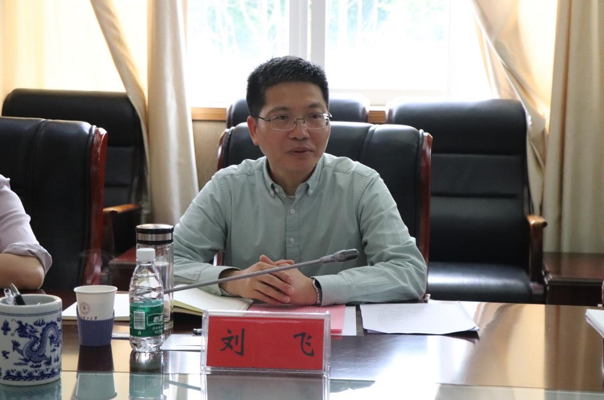 在红旗校区原行政楼第二会议室,刘飞一行与师生代表进行了座谈。马克思主义学院院长邓显超就学院思政课建设的工作进展与成效、存在的不足以及下一步努力的方向进行了汇报。