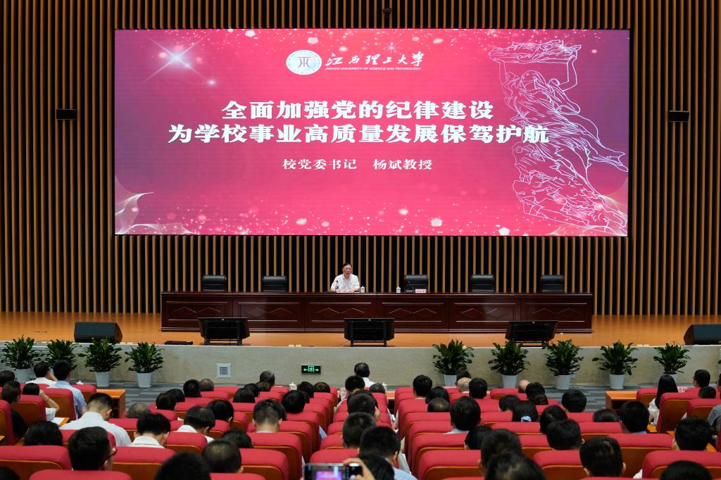 杨斌要求,当前,学校事业发展面临全新的发展形势,机遇前所未有,挑战也前所未有。面对前进道路上的困难和挑战,我们要深入学习贯彻习近平新时代中国特色社会主义思想,切实把党纪学习教育各项任务落实落细,以新修订的《中国共产党纪律处分条例》为准绳,切实做到知责于心、担责于身、履责于行,以铁的纪律锻造过硬作风,以实干担当展现更新作为,在见贤思齐中砥砺奋斗之志,在比学赶超中狠抓工作落实,不断开创学校事业高质量发展新局面,为奋力谱写中国式现代化江西篇章作出更大贡献。