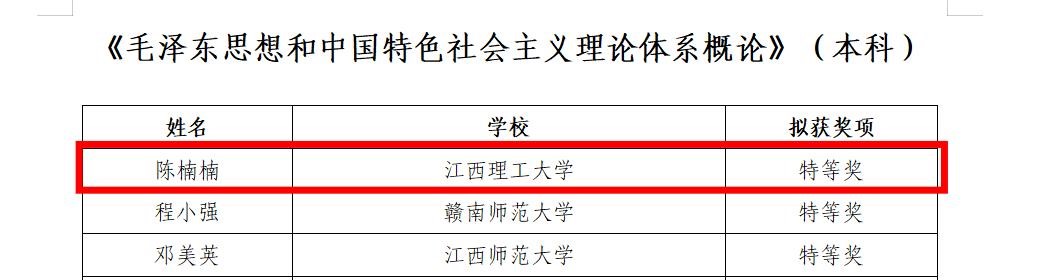 其中,陈楠楠老师在《毛泽东思想和中国特色社会主义理论体系概论》课程比赛中获特等奖,汪爱平老师在《中国马克思主义与当代》课程比赛中获一等奖,周光玲老师在《中国近现代史纲要》课程比赛获一等奖。
