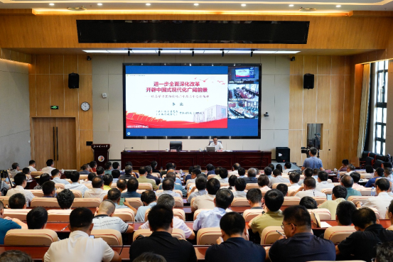 报告会上,李能围绕深刻领会党的二十届三中全会的重大意义、深刻领会中共中央政治局工作报告的主要精神、深刻领会进一步全面深化改革的总体要求、深刻领会进一步全面深化改革的重大举措、深刻领会进一步全面深化改革的根本保证、深刻领会贯彻落实全会精神的基本要求等六个方面,用平实的语言、生动的事例和翔实的数据,对全会精神进行了系统深入的解读。