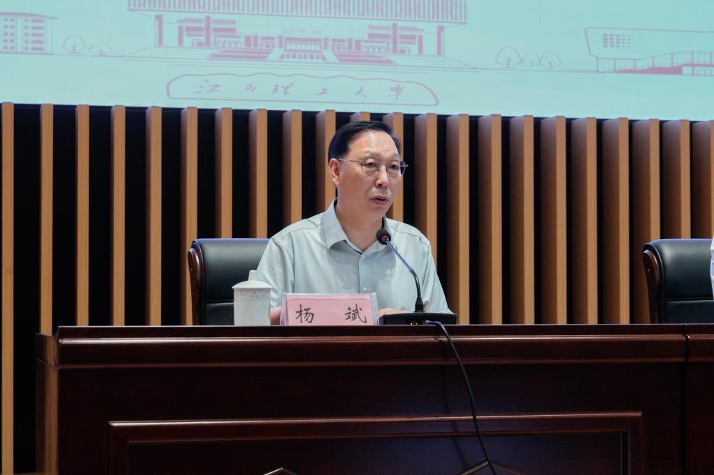 杨斌表示,及时学习并贯彻落实党的二十届三中全会精神和江西高校党委书记、校长提升政治能力培训班精神,能有效提升全体干部的政治能力和业务能力,开拓视野,凝聚共识。杨斌强调,要在应用研究和基础研究之间寻求更加均衡的发展,在新增学位点等方面继续努力;要关注优势学科和新兴学科发展的必要性;要依托国家和地方的支持,加强校企合作,提升学科建设与技术研发能力;要促进高层次人才培养,加强团队廉洁自律建设和内部凝聚力。