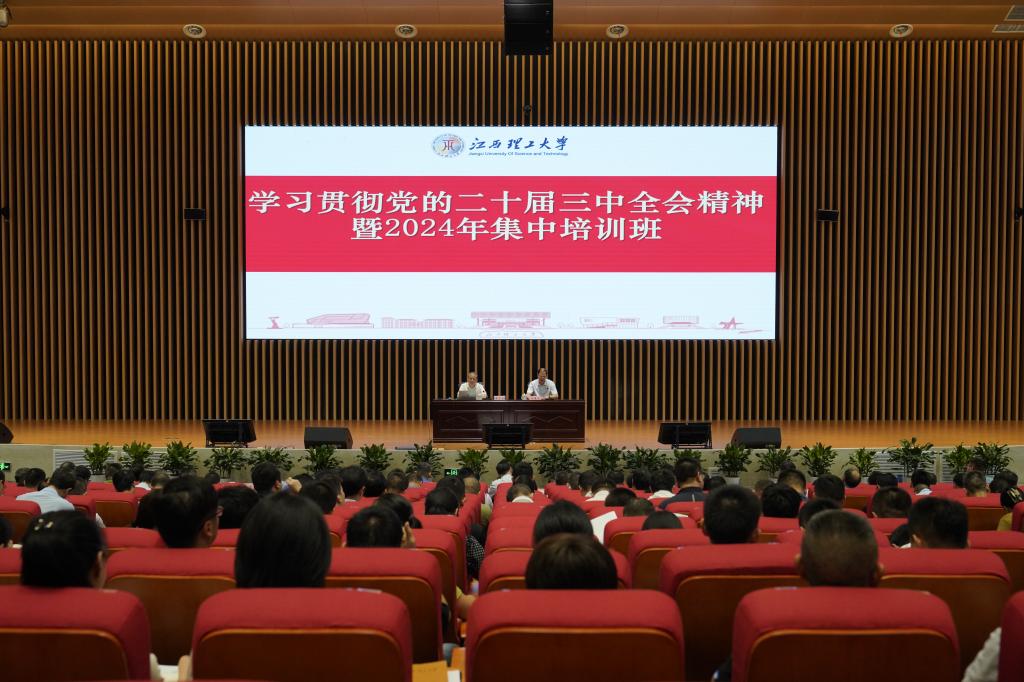 学习贯彻党的二十届三中全会精神暨2024年集中培训班在三江校区志远会议中心1号会议厅顺利开班并圆满结业。校领导班子成员、全体中层干部、高层次人才、党支部书记以及党建组织员,共计330人参加培训。培训由校党委常委、副校长廖春发主持。