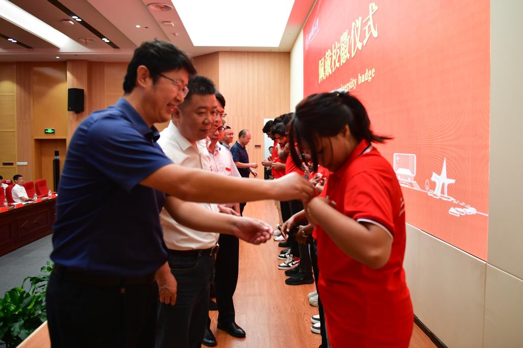 典礼上,全体同学进行了校徽佩戴仪式,校领导、院领导为新生代表佩戴校徽。