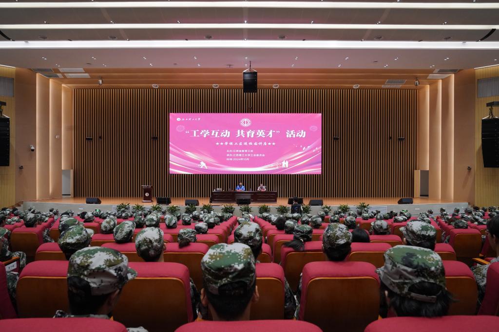 邀请2024届大国工匠培育对象、全国劳动模范、全国技术能手、第十四届全国人大代表、江铃集团首席技师刘辉在志远会议中心开展以“工学互动,共育英才”为主题的讲座。2024级共512名新生参加讲座,讲座由校工会主席余育新主持。