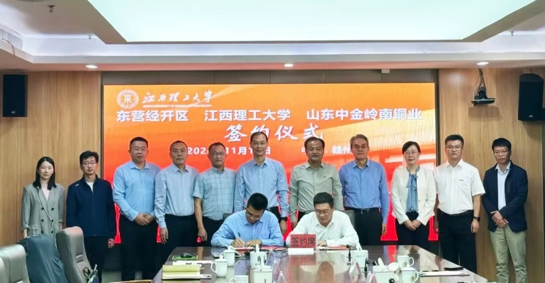 在与会人员的共同见证下,学校与东营经济技术开发区、山东中金岭南铜业有限责任公司签署校政企战略合作协议,与山东中金岭南铜业有限责任公司签署科技项目合作协议。