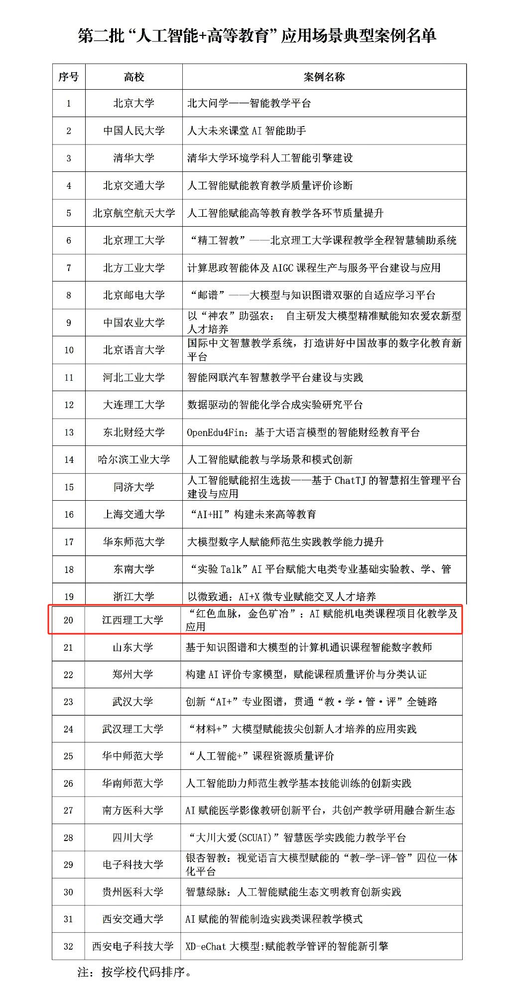 “‘红色血脉,金色矿冶’:AI赋能机电类课程项目化教学及应用”为江西省唯一成功入选的案例。