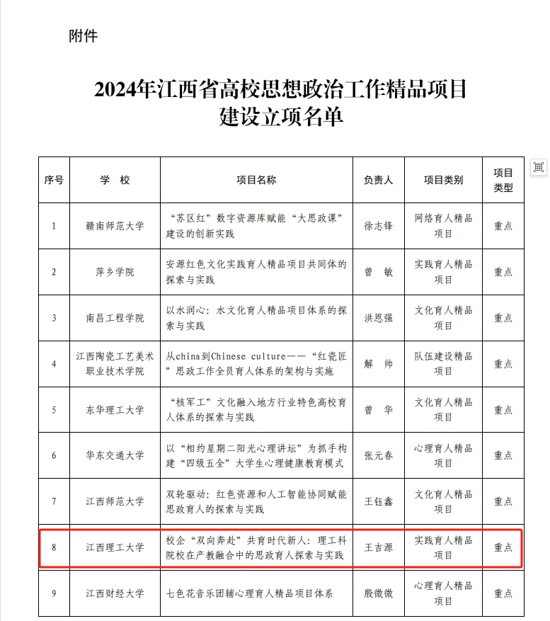 本网讯 近日,江西省教育厅公布了2024年江西省高校思想政治工作精品项目建设立项名单。百家乐 有两项项目入选2024年江西省高校思想政治工作精品项目建设立项名单。