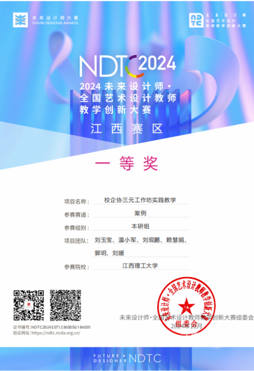 黄金发教授应邀出席颁奖典礼。在本次大赛中,建筑与设计学院师生凭借创意与设计实力,荣获20余项奖项。其中,教师教学创新大赛全国总决赛一等奖1项(全省仅2项)、三等奖1项,江西省赛区一等奖2项,三等奖1项;学生作品荣获全国总决赛一等奖2项,二等奖4项,三等奖2项;同时,学院9位教师荣获优秀指导教师奖。