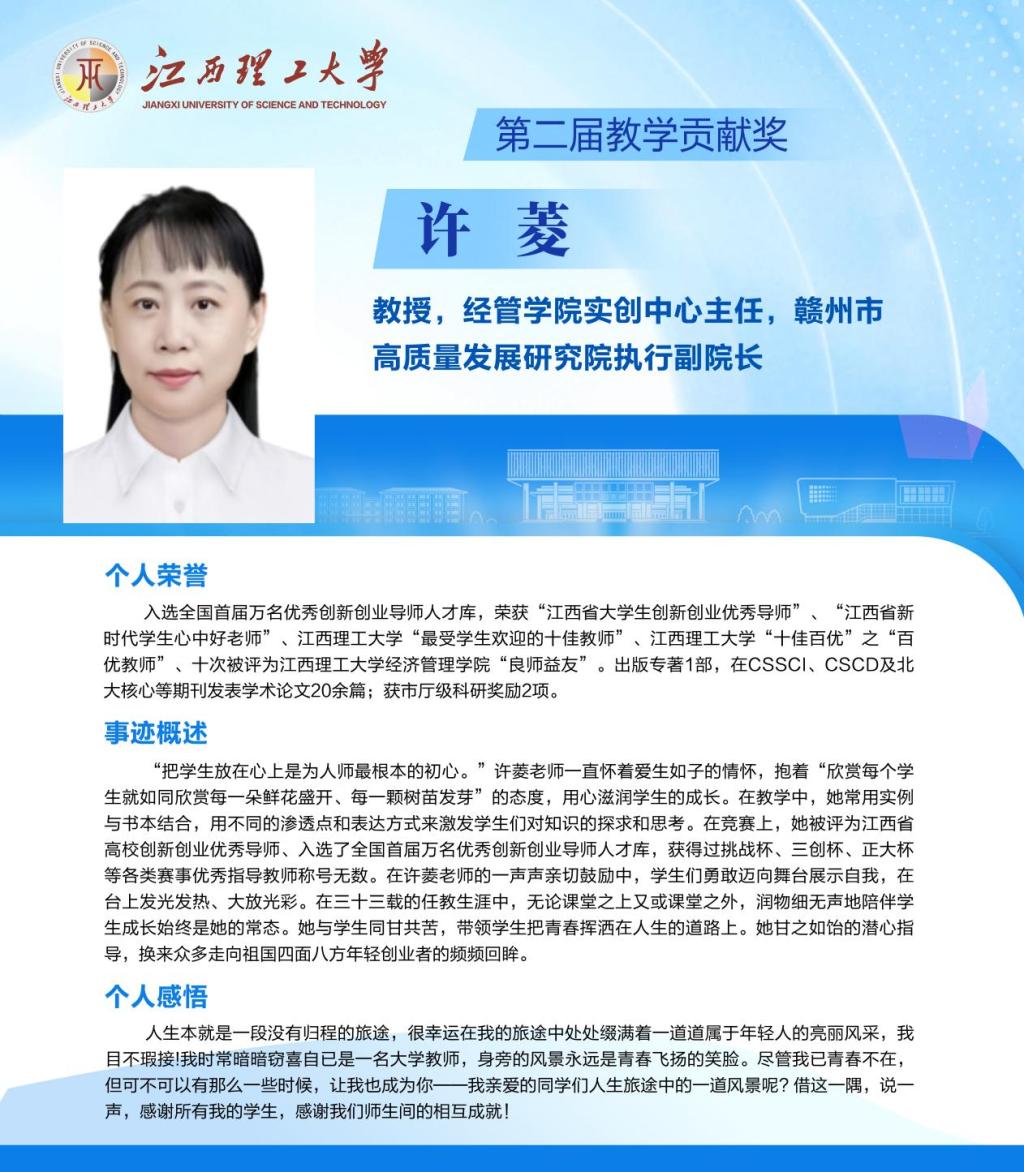 开展教学贡献奖评选,旨在表彰长期辛勤耕耘、潜心教学,默默奉献在教学一线,深受师生好评的教师。引导广大教师以获奖教师为榜样,用心教学潜心育人,积极投身教学改革与研究工作,为推动学校本科教育教学水平和人才培养质量贡献更多智慧和力量。