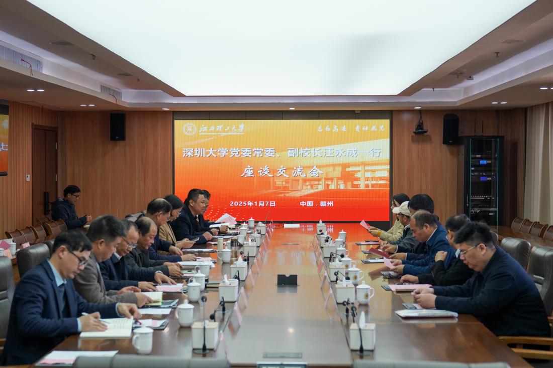 本网讯 1月7日上午,深圳大学党委常委、副校长汪永成一行来校座谈交流对口合作事宜。校党委常委、副校长廖春发,市委教育工委委员、市教育局副局长赖晓琴出席。会议由校党委常委、统战部部长汪锋锁主持。
