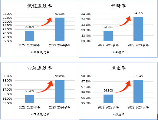 强化传帮带引领聚焦薪火相传,增强红齿轮传动力。学院积极探索全新育人路径,大力推动教授进学生社区,依托“青春领航”辅导员工作室,促进老师与学生展开面对面、心贴心的交流互动,激发学长以亲身经历为学弟学妹们答疑解惑、指引方向,为学风提升注入强劲动力,提升学生学习兴趣,促使课程通过率、四级通过率、学生毕业率以及考研录取率等数据较前三年均值显著提升,并获“2023-2024学风建设先进学院”。