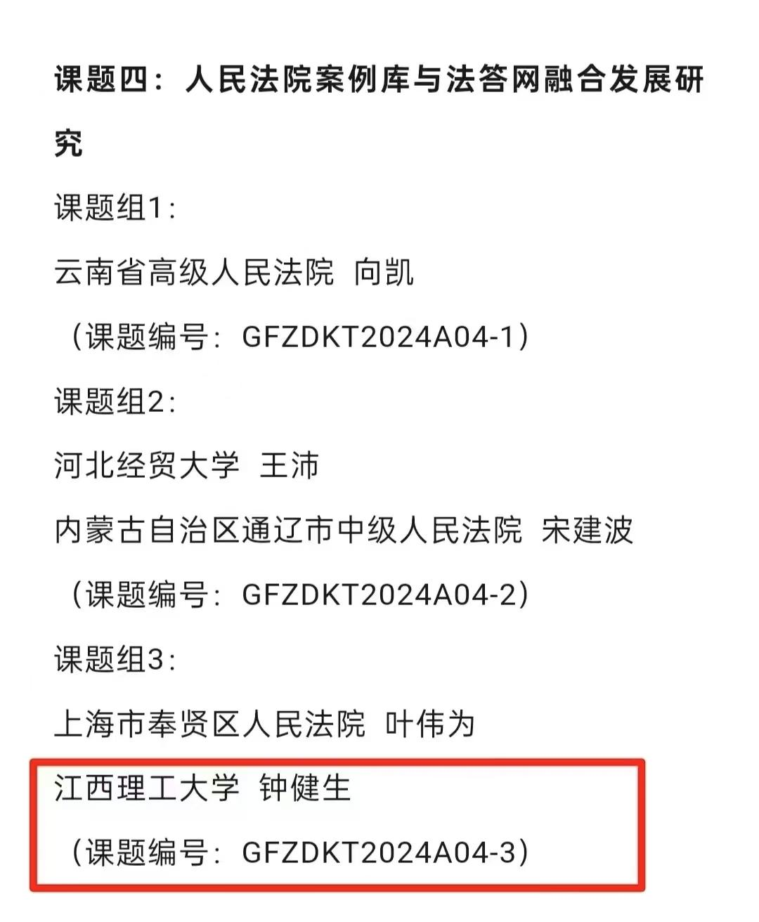 法学院钟健生教授主持的课题《人民法院案例库与法答网融合发展研究》立项获批。
