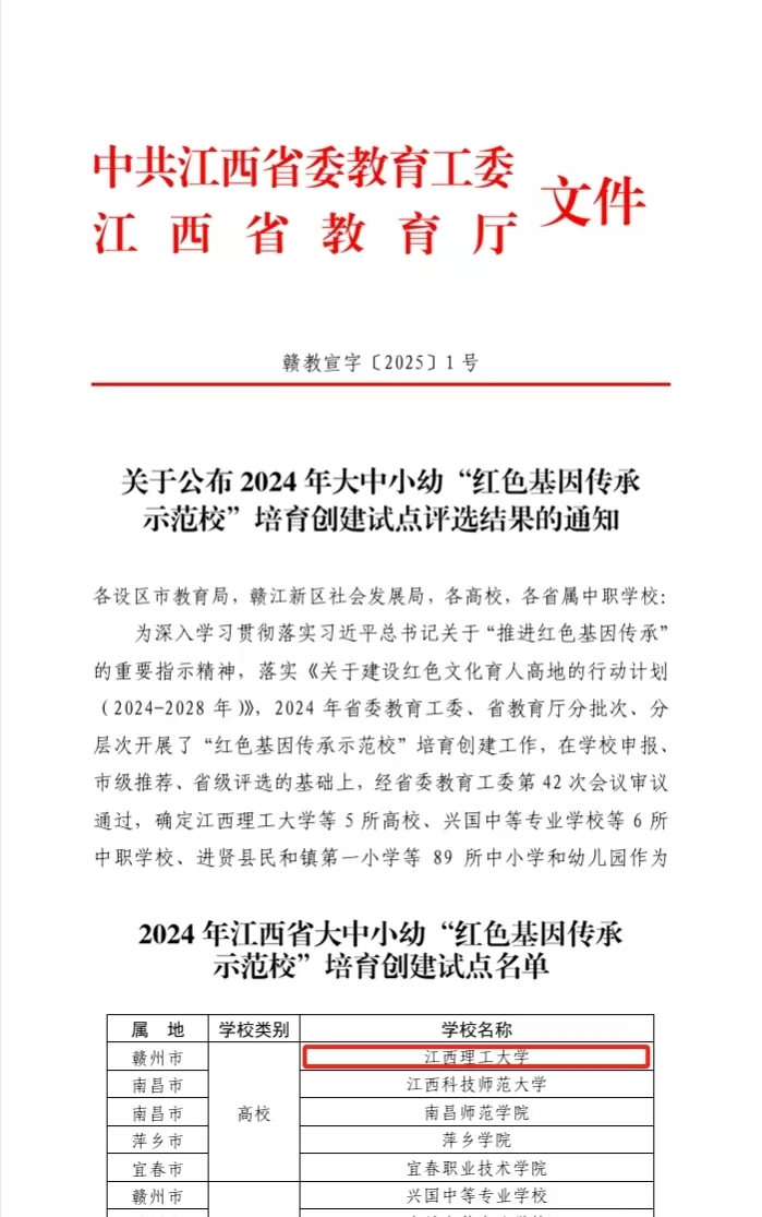 以全省高校第一名的优异成绩获评“红色基因传承示范校”培育创建试点单位。