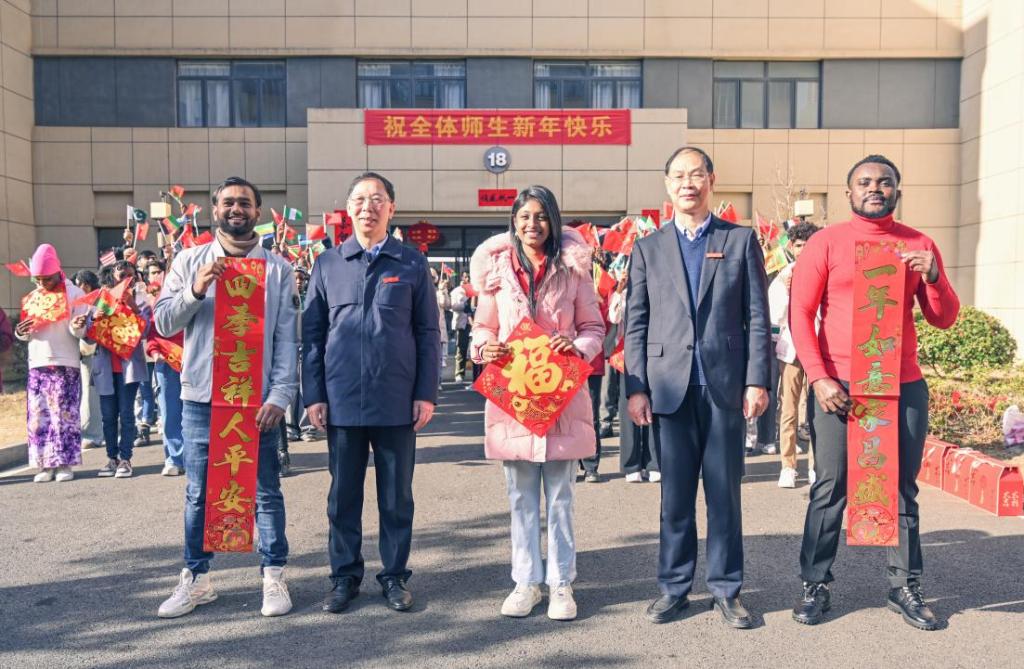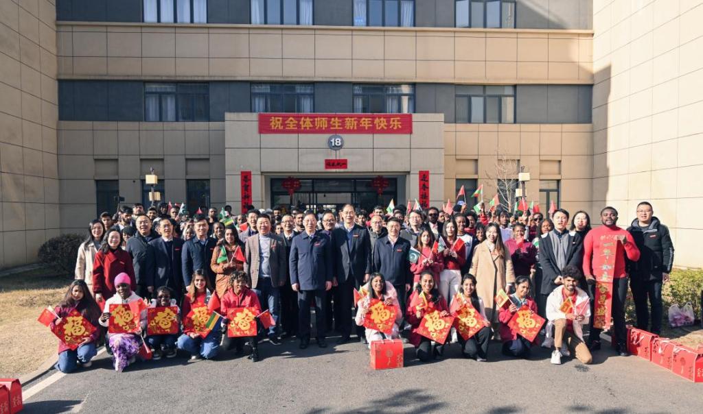 杨斌向国际学生们致以新春祝福和诚挚问候,他表示,春节是中国最重要的传统节日,也是阖家团圆、共度佳节的温馨时刻。值此新春佳节,希望国际学生们能够敞开心扉,全身心地去感受、去体验中国新年独有的文化氛围、传统魅力,与我们一同分享节日的喜悦。新的一年,也希望国际学生们继续满怀热忱,砥砺奋进。在学业上,勤奋学习,夯实基础;在生活中,积极向上,培养良好的品德和习惯。同时,更加深入地融入中国的文化与社会,架起文化沟通的桥梁。