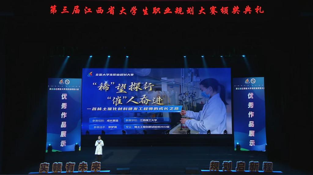 此外,稀土学院的廖梦琪作为高教组唯一代表,在大赛颁奖典礼上进行优秀作品展示,展现了百家乐