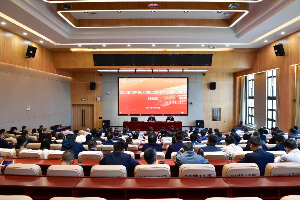 在三江校区启航会议中心1号会议厅举行深入贯彻中央八项规定精神学习教育读书班开班仪式。校党委书记杨斌作开班讲话,校党委副书记徐志峰主持开班式。全体校领导、党委常委、副处级以上干部参加会议。