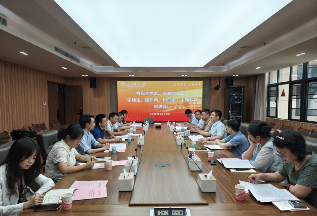 2025年党派团体负责人会议暨各民主党派、无党派人士“学规定、强作风、树形象”主题教育推进会在三江校区召开。校党委副书记徐志峰出席会议并讲话。学校各民主党派、统战团体负责人及领导班子成员代表参加。会议由校党委常委、统战部部长汪锋锁主持。