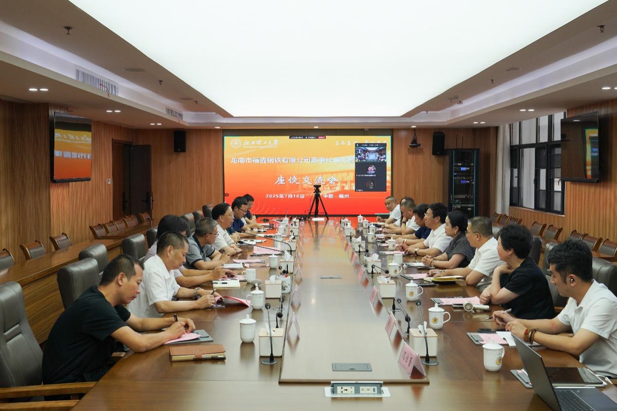 校长办公室、科学技术处、冶金工程学院、国际创新研究院和龙南市福鑫钢铁有限公司等单位负责人及教师代表参加座谈交流。