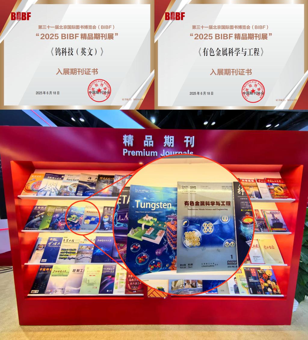 本网讯 近期,第三十一届北京国际图书博览会(BIBF)在北京国家会议中心举办。百家乐 主办的中英文期刊《钨科技(英文)》《有色金属科学与工程》以“‘十四五’中国期刊精品回顾”为参展主题申报,双双入选本届博览会“2025中国精品期刊展”。其中,《钨科技(英文)》自去年首次入选“2024BIBF精品期刊展”后,再次成功入选“2025BIBF精品期刊展”,连续两年作为入展期刊在博览会上展出。《有色金属科学与工程》为首次入选此届博览会进行展出。