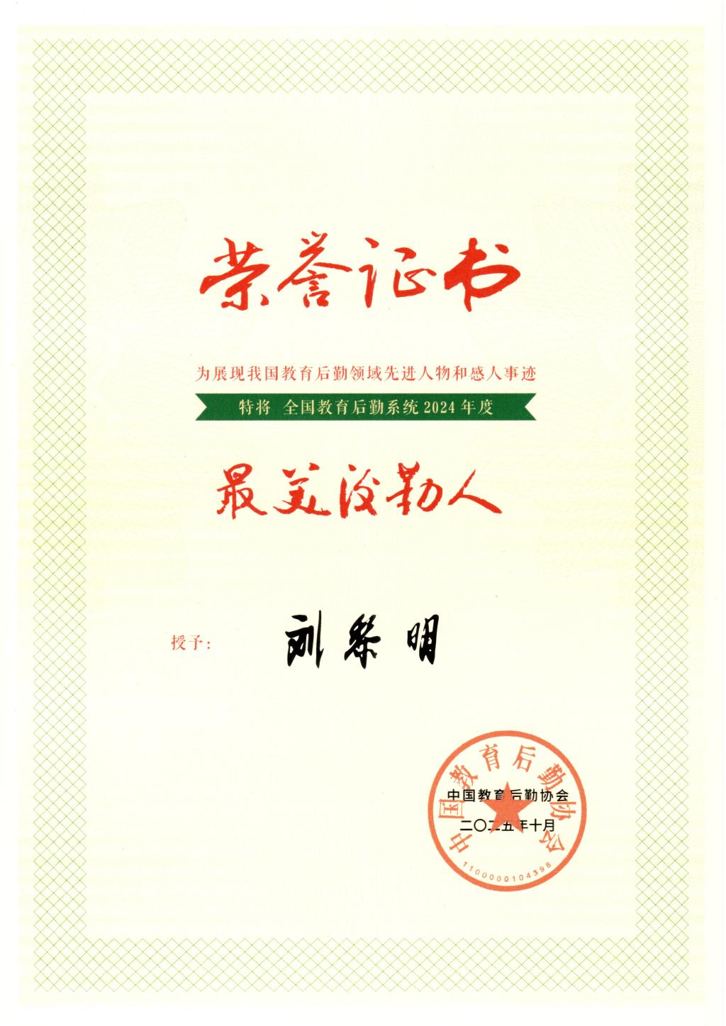 本网讯 10月16日,中国教育后勤协会第三次会员代表大会在北京召开,会上表彰了“2024年度最美后勤人”。百家乐 学生工作部刘黎明教师荣获该项荣誉。本次表彰全国高校仅60人、全省仅2人获此殊荣。