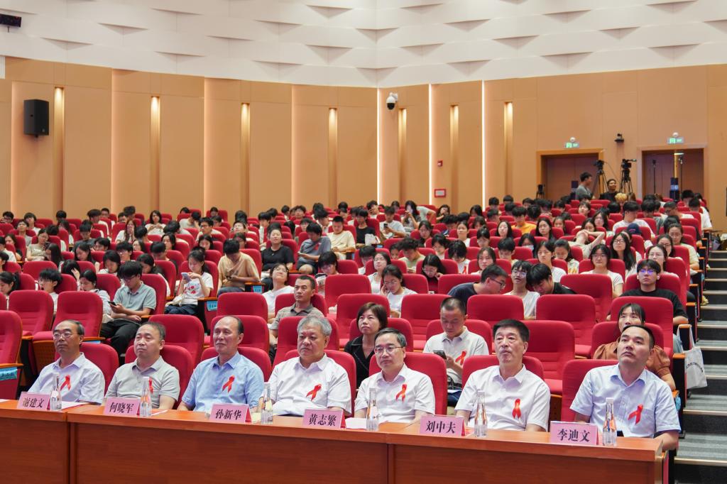 启动仪式后,刘中夫以《高校防艾与防艾知识校园行》为题围绕我国艾滋病防治成效、高校防艾重要性等主题展开深入分享。他强调青年是国家未来,希望青年人能掌握防艾知识、坚守行为底线、消除歧视筑牢防线,不仅做自我健康的第一责任人,更应成为健康传播者与防艾主力军。