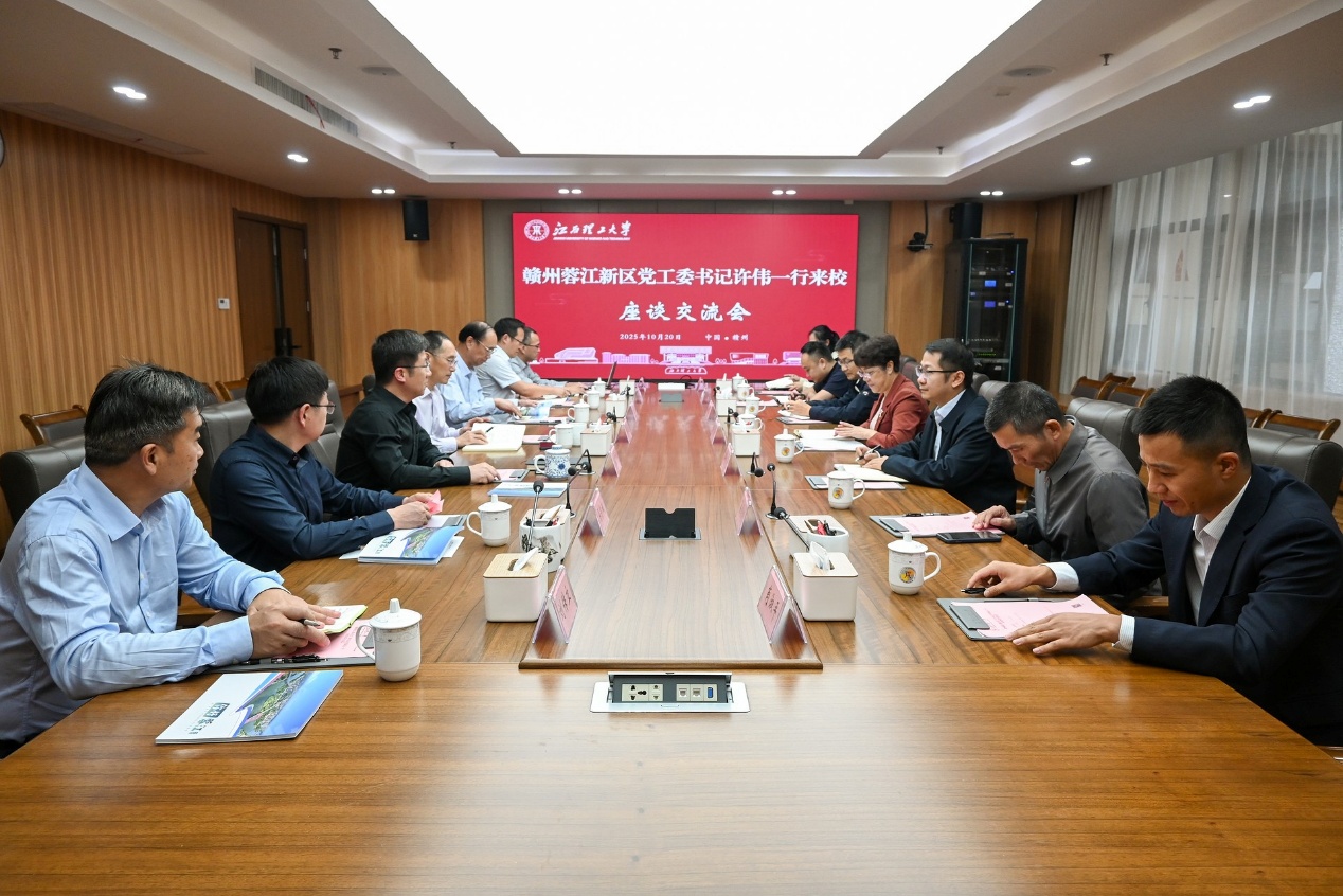 本网讯 10月20日,赣州蓉江新区党工委书记许伟一行来校交流,并在三江校区(东园)濂溪楼三楼1号会议室召开区校合作座谈会。赣州蓉江新区党工委委员、管委会副主任郭钟群,党政办公室主任黄骁等陪同。校党委书记刘祖文,校长、中国工程院院士葛世荣出席会议。校党委办公室、校长办公室、科学技术处、国内合作促进中心、土木与测绘工程学院等相关职能部门及学院负责人参加会议。会议由校党委副书记徐志峰主持。