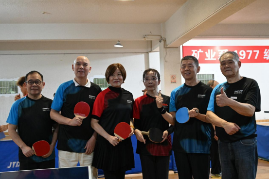 11日当天下午,红旗校区体育馆内掌声阵阵,乒乓球友谊赛火热开赛。许晓文率先挥拍上阵,这位当年包揽校内多项体育冠军、保持校铁饼纪录的“体育明星”,如今依旧身手矫健,扣杀、旋转球引得现场喝彩连连。韩家新也兴致勃勃地参与其中,作为当年校田径、篮球队的主力,她打完球后与学子们分享:“体育教会我们的不只是技巧,更是坚韧和团队精神——输了不气馁,赢了不骄傲,这种品格无论在学习还是工作中都至关重要。”