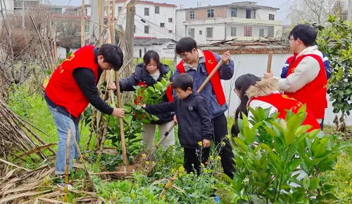 机电工程学院青年志愿者协会与南康区镜坝镇洋江村童心港湾开展“拥抱春天,‘植’此青绿”学雷锋志愿服务活动。