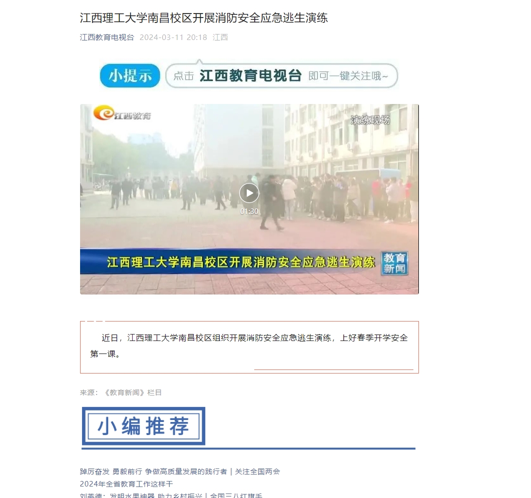 近日,百家乐 南昌校区组织开展消防安全应急逃生演练,上好春季开学安全第一课。