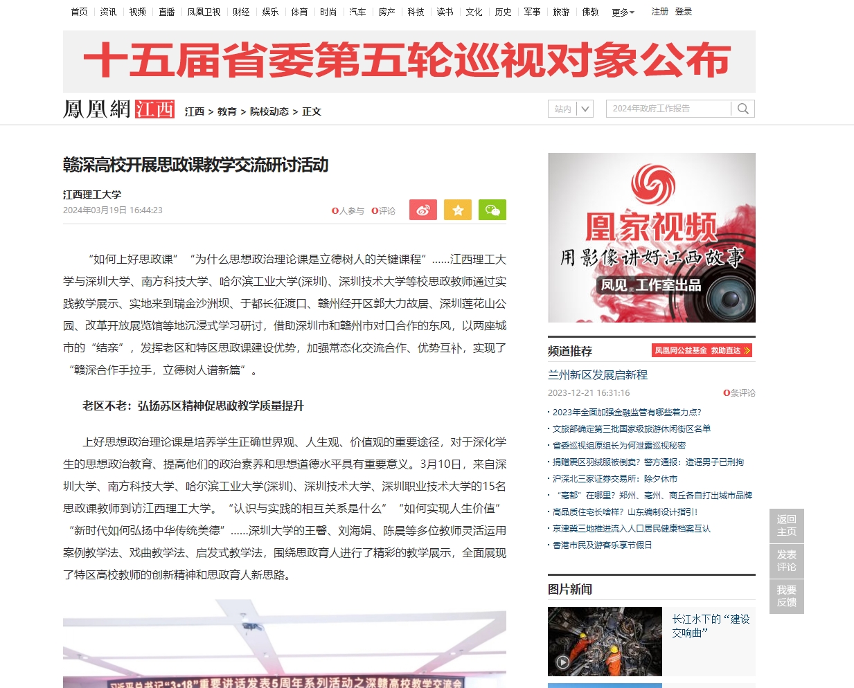 与深圳大学、南方科技大学、哈尔滨工业大学(深圳)、深圳技术大学等校思政教师通过实践教学展示、实地来到瑞金沙洲坝、于都长征渡口、赣州经开区郭大力故居、深圳莲花山公园、改革开放展览馆等地沉浸式学习研讨,借助深圳市和赣州市对口合作的东风,以两座城市的“结亲”,发挥老区和特区思政课建设优势,加强常态化交流合作、优势互补,实现了“赣深合作手拉手,立德树人谱新篇”。