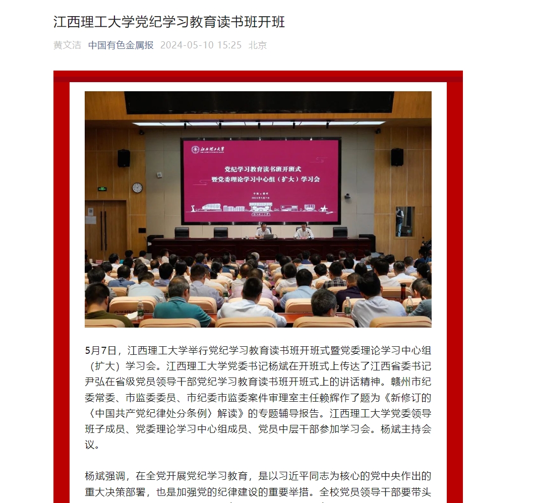 党委书记杨斌在开班式上传达了江西省委书记尹弘在省级党员领导干部党纪学习教育读书班开班式上的讲话精神。赣州市纪委常委、市监委委员、市纪委市监委案件审理室主任赖辉作了题为《新修订的〈中国共产党纪律处分条例〉解读》的专题辅导报告。百家乐