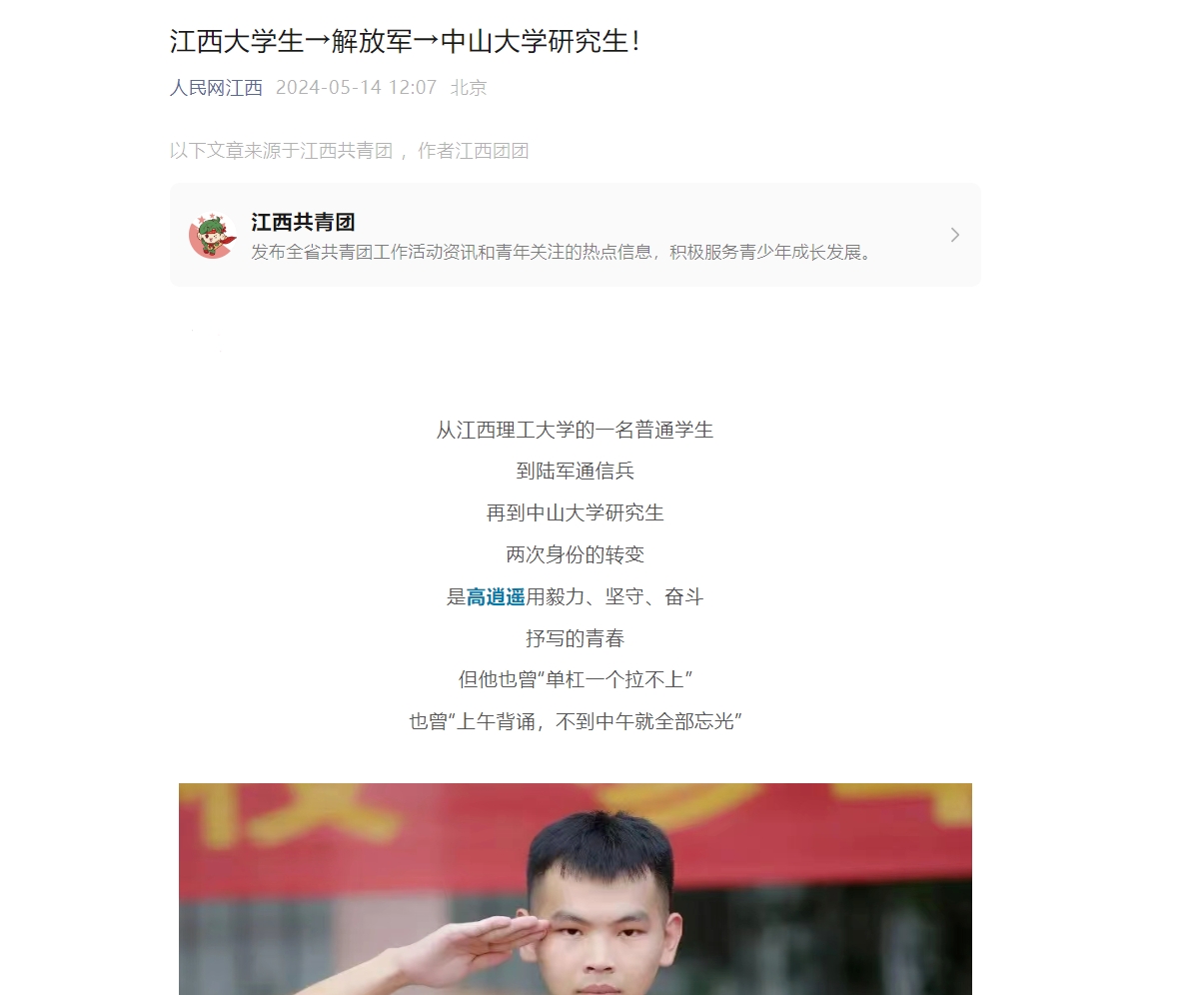 上一条:《江西日报》:深刻把握新质生产力的理论价值 下一条:《江西共青团》:江西大学生→解放军→中山大学研究生!