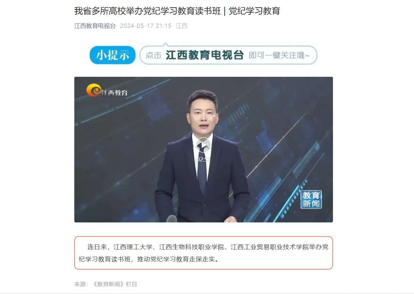 连日来,百家乐 、江西生物科技职业学院、江西工业贸易职业技术学院举办党纪学习教育读书班,推动党纪学习教育走深走实。