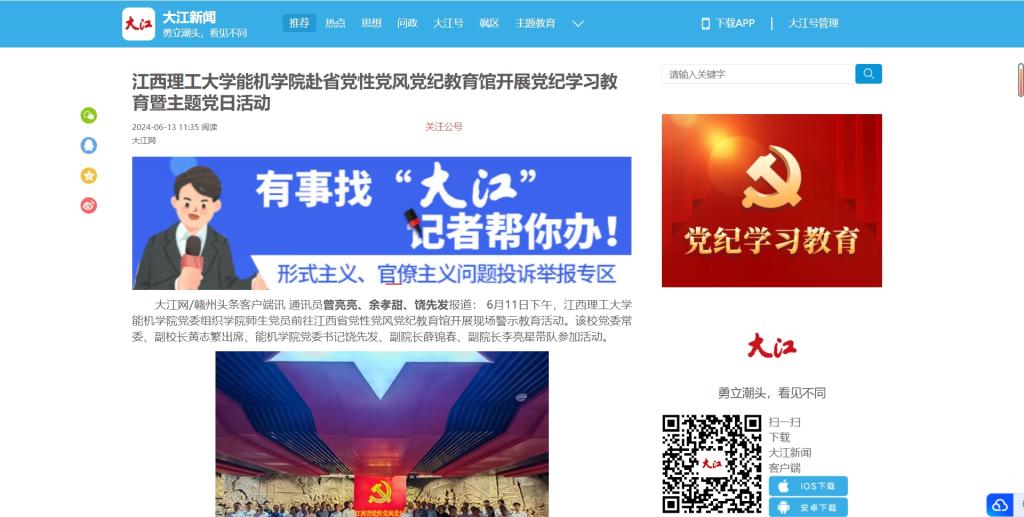 能机学院党委组织学院师生党员前往江西省党性党风党纪教育馆开展现场警示教育活动。该校党委常委、副校长黄志繁出席、能机学院党委书记饶先发、副院长薛锦春、副院长李亮星带队参加活动。