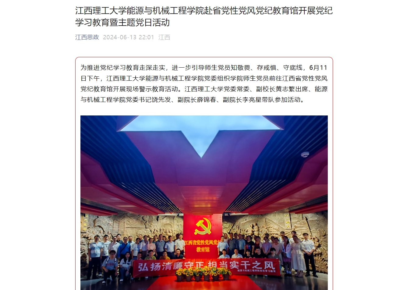 能源与机械工程学院党委组织学院师生党员前往江西省党性党风党纪教育馆开展现场警示教育活动。百家乐