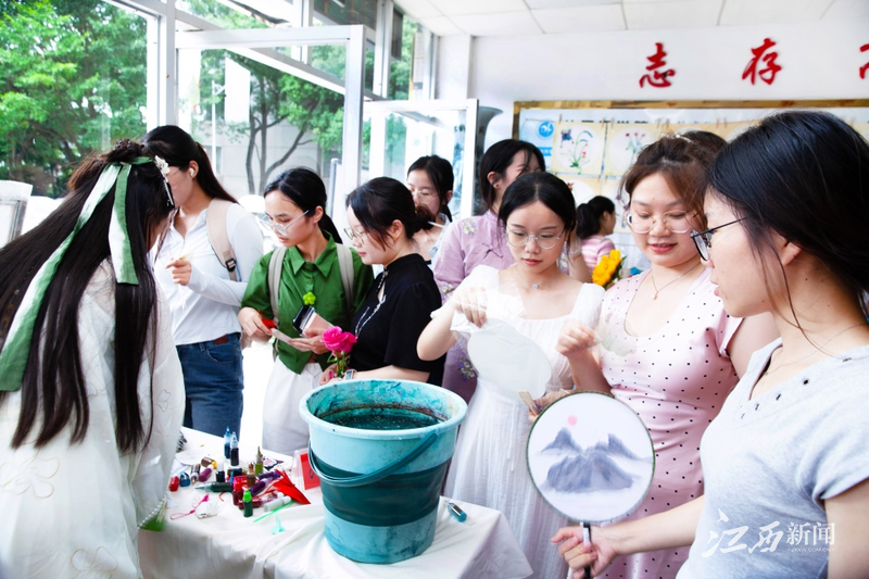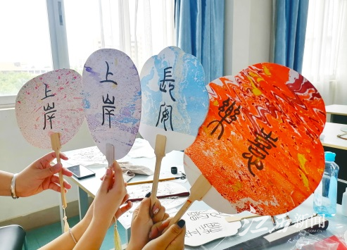 活动现场,师生们纷纷亮出各自的才艺。在漆扇制作区,一把把精致的漆扇在制作者的巧手下逐渐成形,每一道工艺都凝聚着深厚的文化底蕴;在书法区,书法爱好者们挥毫泼墨,笔走龙蛇,展现了中华书法的独特魅力;在飞花令环节,参与者们以诗词接龙的方式,展现了他们对古典文学的热爱与造诣。