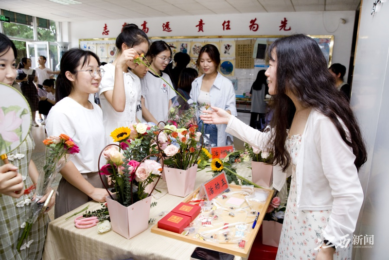 此外,插花、剪纸等传统艺术也吸引了众多师生的关注。在插花区,参与者们用各种花卉创作出精美的花艺作品,展示了中国传统花艺的韵味;在剪纸区,一把剪刀、一张纸,通过师生们的创作变幻出各种精美的图案,令人叹为观止。
