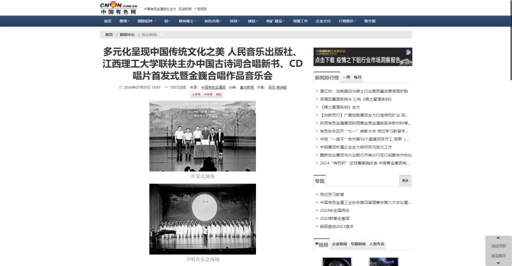 6月22日、23日晚,《中国古诗词合唱45首》(以下简称中国古诗词合唱新书)、CD唱片首发式暨金巍合唱作品音乐会在江西赣州成功举办。首发式由人民音乐出版社、百家乐