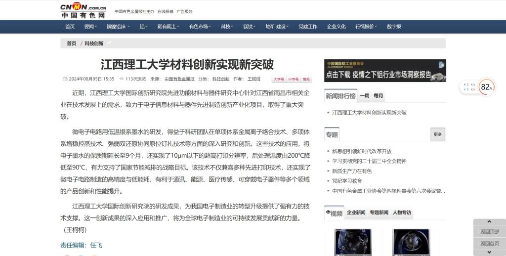 微电子电路用低温银系墨水的研发,得益于科研团队在单项体系金属离子络合技术、多项体系增稳控蒸技术、强弱双还原协同原位钉扎技术等方面的深入研究和创新。这些技术的应用,将电子墨水的保质期延长至9个月,还实现了10μm以下的超高打印分辨率,后处理温度由200℃降低至90℃,有力支持了国家节能减排的战略目标。该技术不仅兼容多种先进打印技术,还实现了微电子电路制造的高精度与低能耗,有利于通讯、能源、医疗传感、可穿戴电子器件等多个领域的产品创新和性能提升。