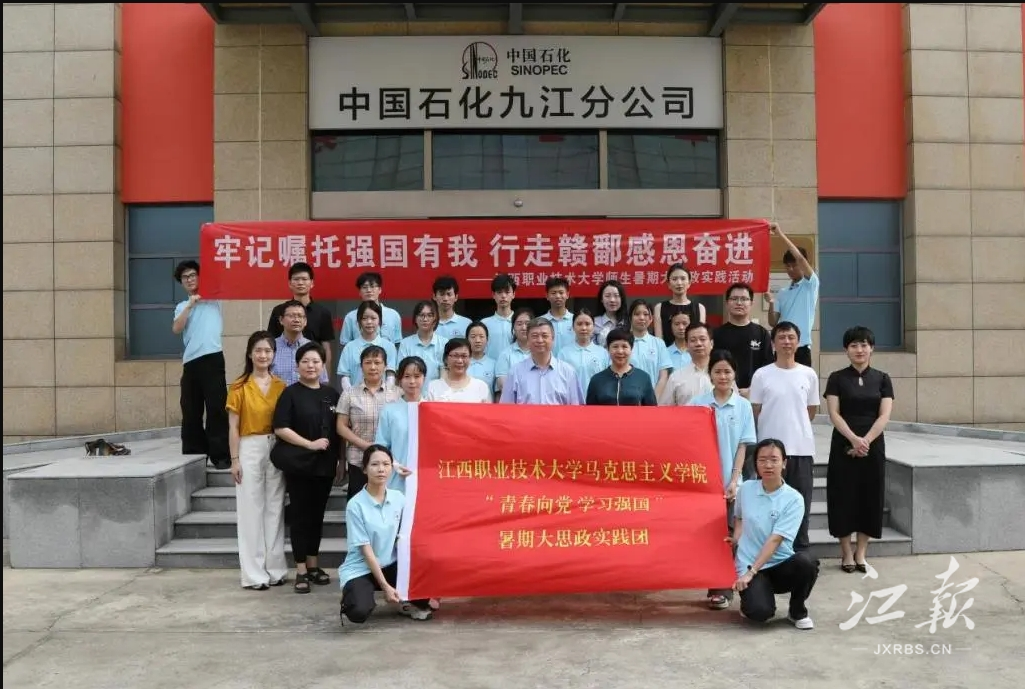 、江西职业技术大学的实践队分别来到江西金力永磁科技股份有限公司和中国石化九江分公司,校企携手、“一课多师”,打造“行走的思政课”。景德镇陶瓷大学的实践队在陶阳里、陶溪川等地,感悟讲好新时代中国陶瓷故事的时代重任。