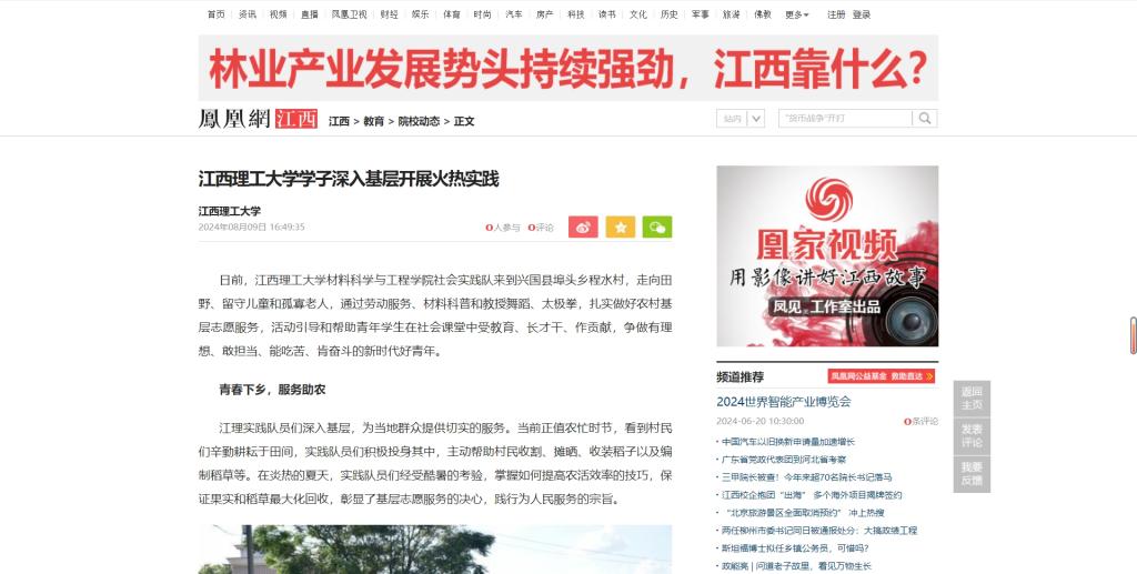 材料科学与工程学院社会实践队来到兴国县埠头乡程水村,走向田野、留守儿童和孤寡老人,通过劳动服务、材料科普和教授舞蹈、太极拳,扎实做好农村基层志愿服务,活动引导和帮助青年学生在社会课堂中受教育、长才干、作贡献,争做有理想、敢担当、能吃苦、肯奋斗的新时代好青年。