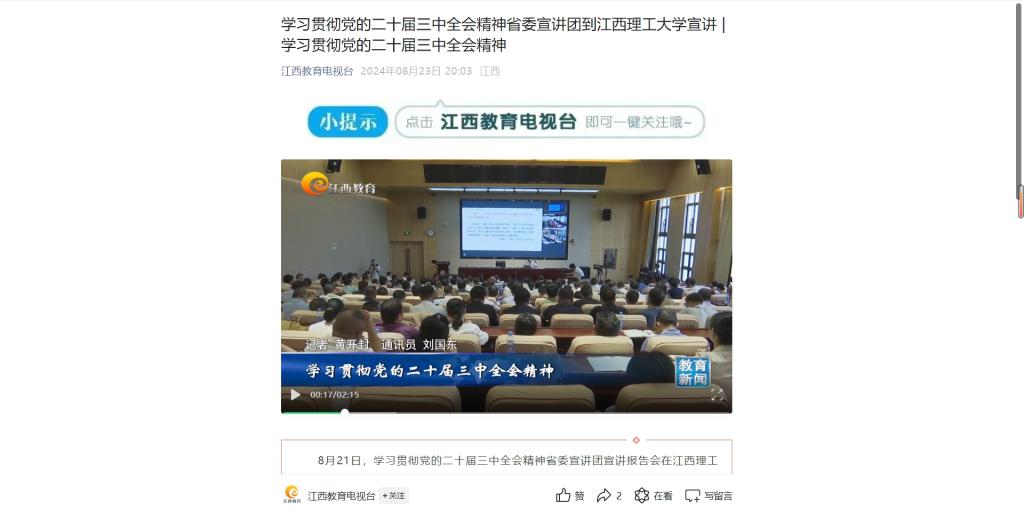 8月21日,学习贯彻党的二十届三中全会精神省委宣讲团宣讲报告会在百家乐 举行。省委宣讲团成员、省委党校(江西行政学院)常务副校长(副院长)李能作宣讲报告。