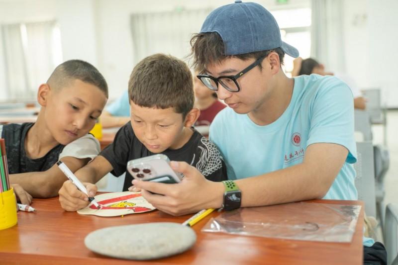 建筑与设计学院“红古绿”民族团结社会实践团走进新疆阿克陶县恰尔隆镇昆仑佳苑小学,发挥专业特色,通过授课式、合作式、游戏式的教学活动,开展爱国主义、美育教育、反诈教育等多主题课程,为昆仑佳苑小学的孩子们带来了不一样的暑期。
